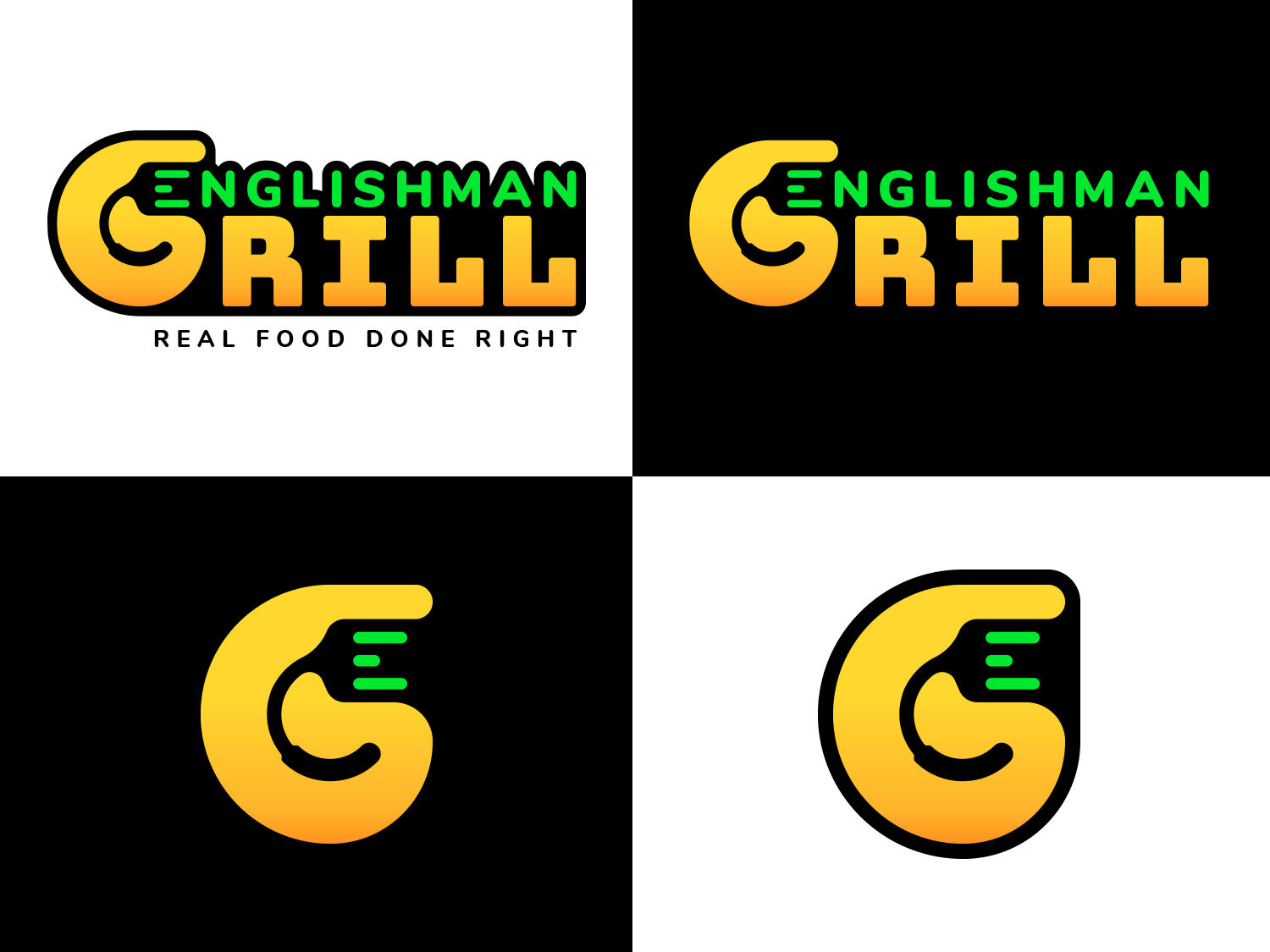 The main challenge was the seamless and non-cluttered integration of three distinct conceptual elements—the initial ‘G’ of Grill, the functional image of a Spatula, and the required subtlety to represent the first ‘E’ of Englishman—all within a single, cohesive, and scalable mark. This integration had to be achieved while maintaining the modern, premium aesthetic required by the client’s positioning.