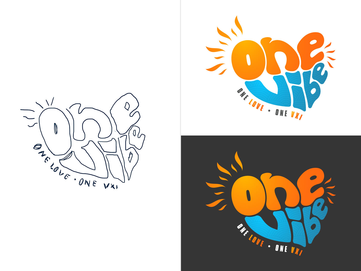 I designed a flowing, custom wordmark that naturally assumes a heart shape when the words ‘One Vibe’ are stacked, visually reinforcing the theme of ‘One Love, One VXI.’ The use of a bright orange-to-yellow gradient combined with a cool blue-to-cyan gradient provided the necessary energy and contrast, symbolizing the sun’s warmth and the ocean’s depth. The addition of sun rays ensured a dynamic, ‘shining’ quality, translating effectively across all materials, including t-shirts and large pull-up banners, ensuring the brand mark became an immediate and memorable symbol for the event.