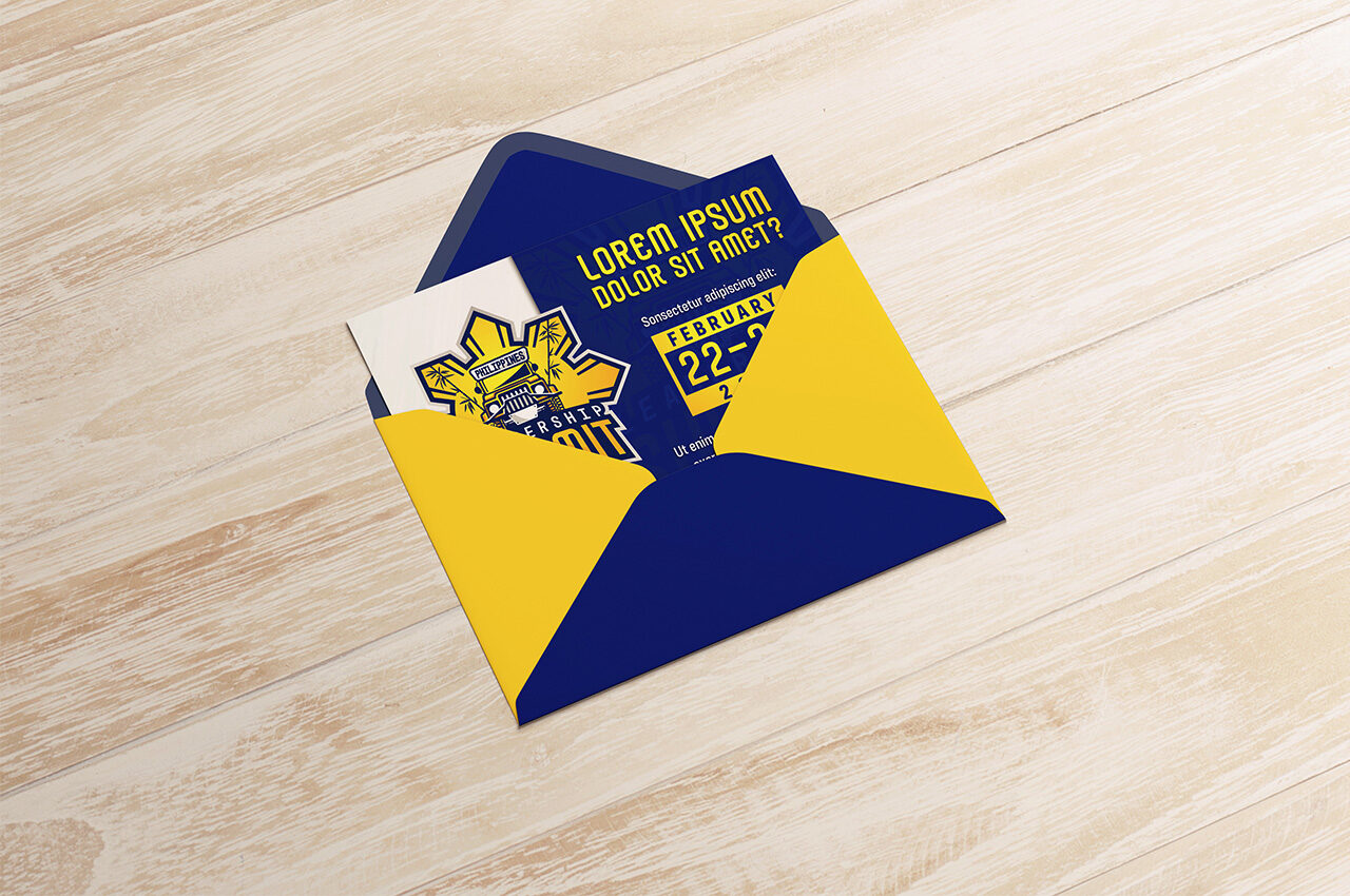 I created a dynamic, emblem-style logo using a bold color palette of Yellow, Deep Blue, and Red—derived from the Philippine flag—to guarantee maximum contrast and impact on all media. The central Jeepney and Bamboo elements were stylized within the form of the 8-Rayed Sun, creating a unified and instantly recognizable national symbol. This core identity was then adapted consistently across all touchpoints, including the string bags, invitation cards, and stage design, ensuring a cohesive and immersive attendee experience.